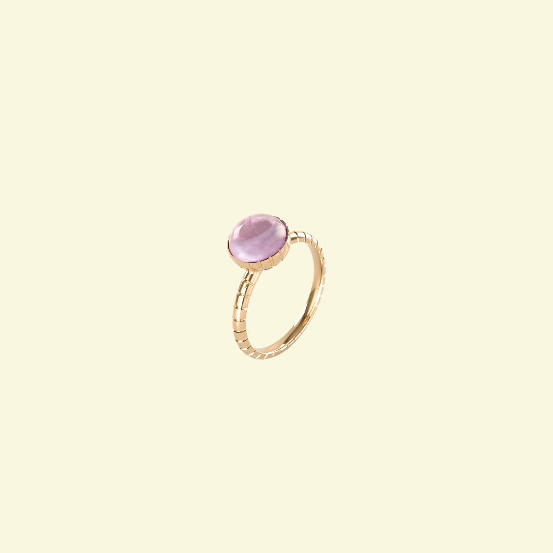 Le travail d'orfèvrerie des godrons répond à la simplicité colorée du cabochon, pour une bague avec un soupçon d'esprit Art déco et beaucoup de style.
